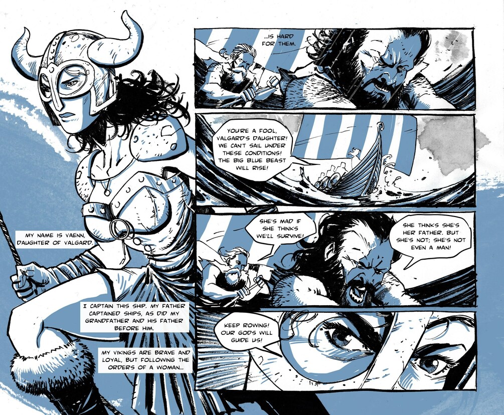 Waterlogged is an impressive duo-coloured hardcover tome that takes the reader on a journey to explore the ocean in all its forms. Described as “a treasury of tales inspired by the briny deep in its latest top-notch showcase of local talent,” this anthology sails through a multitude of stories, from the emotional tempest of a grandfather’s funeral to the outlandish waters of an alien world.